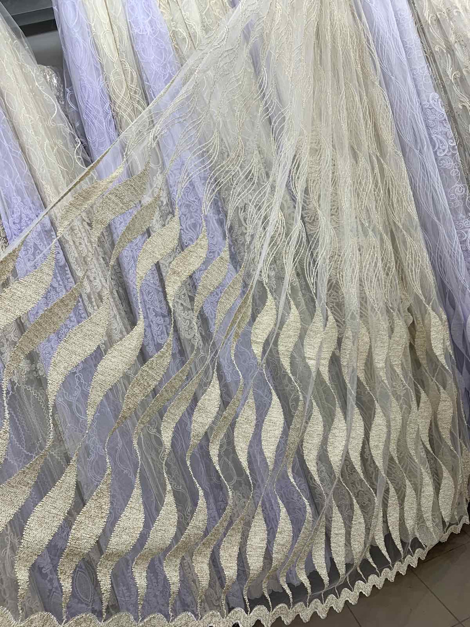 Тюль фатин з вишивкою кордовою ниткою та люрексом.