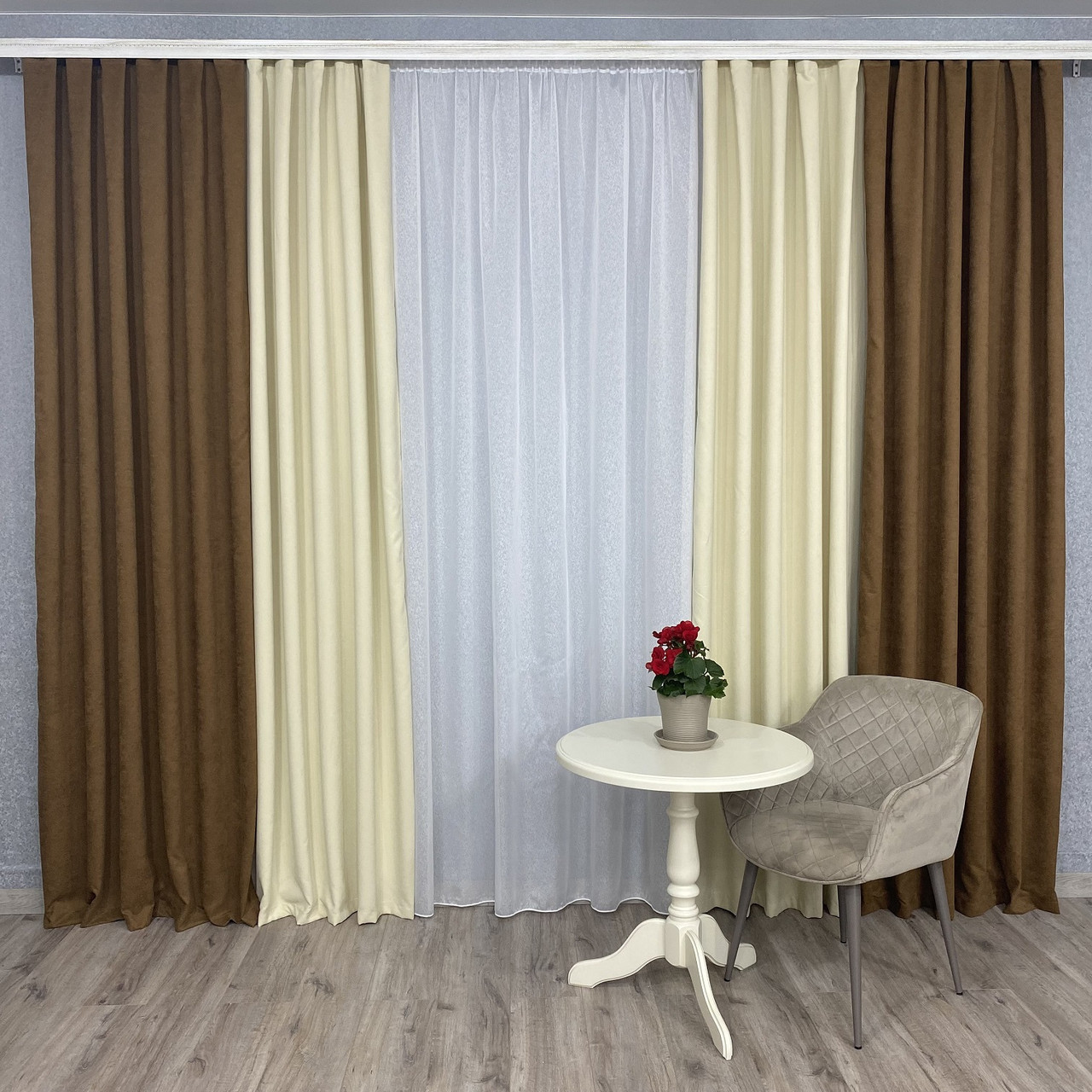 Штори мікровелюр Дует №450 коричневий-крем, фото 1