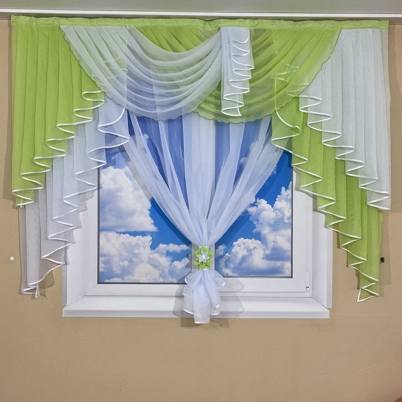 Ламбрекен з тюлем №431 на карниз 2м салатовий, фото 1